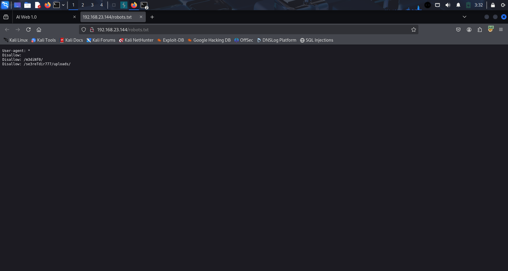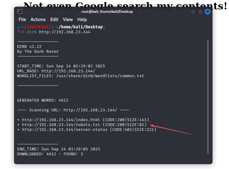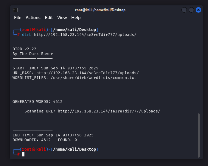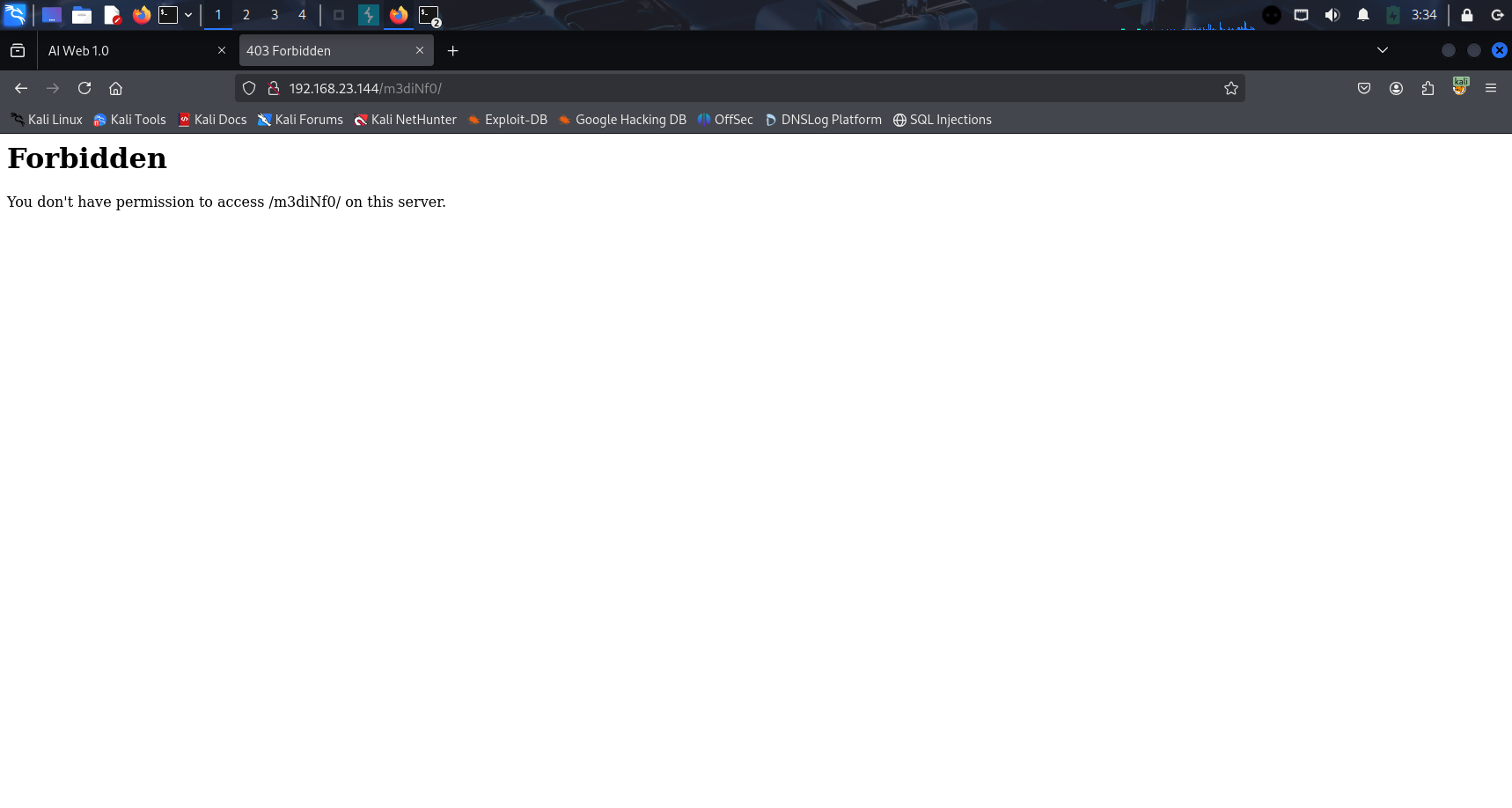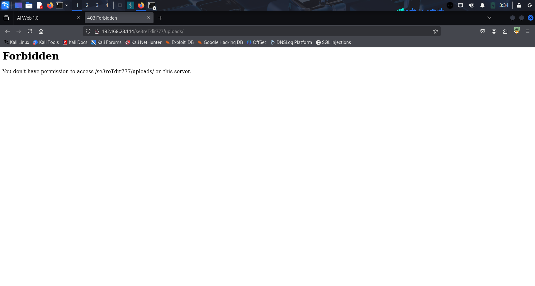 里面有三个路径,但直接访问都被拒绝了。❌ 别灰心,我们用DIRB继续深入扫描这些路径!