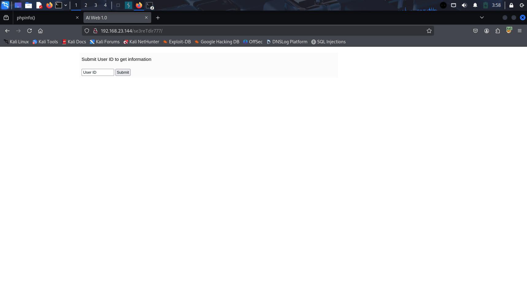 在另一个目录 /se3reTdir777/ 下,我们发现了一个可以输入的网页,这很可能是一个注入点!