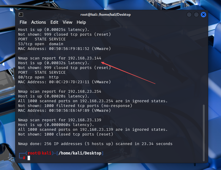 Bingo!🎯 我们发现了一个可疑目标:192.168.23.144,它就是我们的目标靶机!