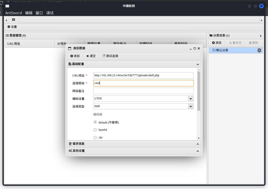 现在,我们可以用更强大的图形化工具——蚁剑(AntSword) 来连接管理我们的WebShell了!